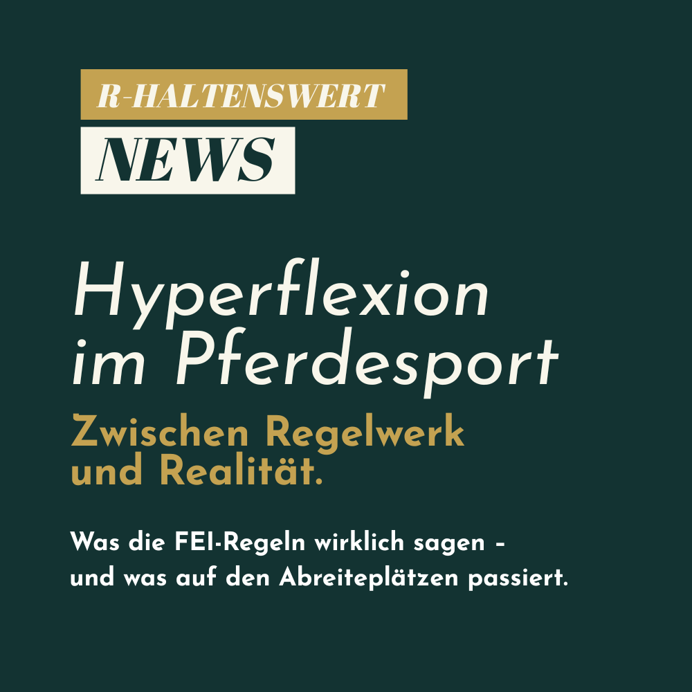 Kaum ein anderes Thema spaltet die Reitsportwelt so sehr wie die Hyperflexion – jene extreme Kopf-Hals-Position, die im Widerspruch zu Ethik, Wissenschaft und Fairness steht. Der neue Artikel beleuchtet die Entwicklung seit 2005: von den ersten FEI-Regelungen über wissenschaftliche Erkenntnisse bis hin zu den offenen Fragen der Gegenwart.